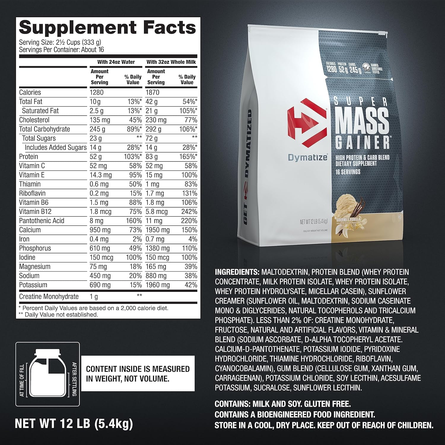 Dymatize - Super Mass Gainer - Protein Powder - Gain Strength & Size (Gourmet Vanilla)