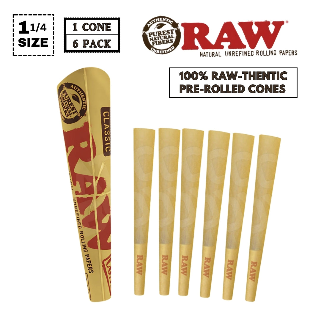 - This pack includes; Count of 6 RAW Classic 1-1/4 pre-rolled cone. Outshoppers only deals in original items.