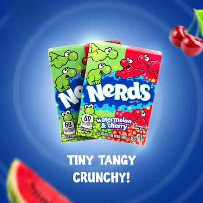 Tiny, tangy, crunchy candy, NERDS are delicious little characters—small and peculiarly shaped yet lovably packed with taste. NERDS couples two complementary flavors in its iconic box designed with dual chambers. Situating delicious Watermelon & Cherry and Grape & Strawberry side by side, NERDS lets candy lovers pour out petite pieces of pure delight.